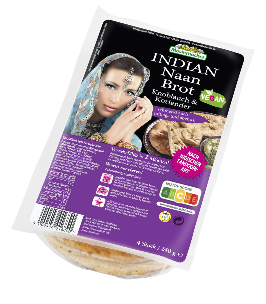 Piekarnik: Lekko zwilż obie strony chlebka naan. Piecz w piekarniku nagrzanym do 180°C z termoobiegiem przez ok. 3- 4 minuty, w zależności od pożądanego zarumienienia.